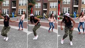 Beautiful black lady rocks camo trousers to dance on the road, oyinbo woman joins her in viral video