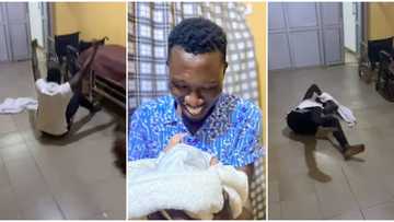 "Joy unspeakable": Nigerian man jubilates widely on floor as his wife gives birth safely, video melts hearts
