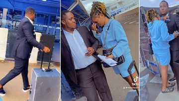 "Love na your mate?" Lady holds lover tightly at airport, weeps in video as he gets set to travel abroad
