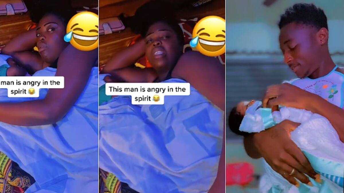 - In a hilarious video, the heartbroken man lamented that the baby has taken over his position in his wife's life