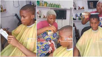 Talented Nigerian female barber gives boy fine haircut with a knife, video sends netizens into a frenzy
