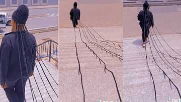 "Beautiful nonsense": Uproar as lady flaunts very long braids sweeping the floor, video causes frenzy