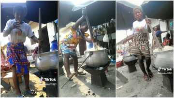 Beautiful lady dances & rolls her waist before turning fufu in big pot, video gets millions of views on TikTok