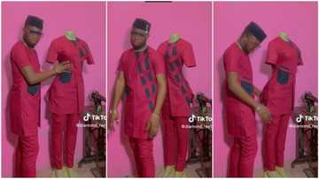 Talented Nigerian tailor makes 1 outfit husband and wife can wear, style looks good on both genders in video