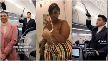 "You're funny": Curvy lady sees fine oyinbo man inside aeroplane, hypes him, man winks at her