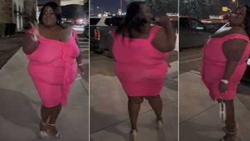 Confident plus-sized lady in pink gown displays her rare body shape, video gets tongues wagging