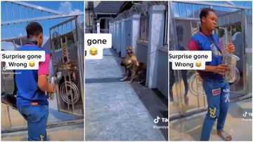 "Surprise gone wrong": Man with saxophone quickly turns back when he saw dogs inside compound