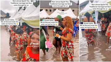 "The couple almost gave up": Asoebi ladies defy heavy rain, dance at flooded venue for bride in viral video