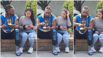 "What are you doing?" Oyinbo lady shocked to see man eating egusi with bare hands, video trends