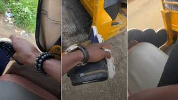 "What does this mean?" Nigerian man cries out after boarding strange keke with small door, video trends