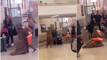 "I left him 11 years ago": Tears as woman falls to floor after meeting son in US, hugs him tightly in video