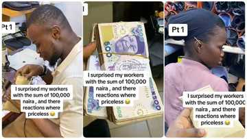 Nigerian employer gives out N100k to staff to help them with high cost of living, they react emotionally in video