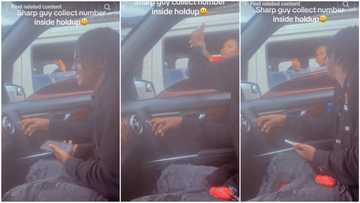 Man sitting in Benz collects lady's number inside holdup, she collects his phone, quickly types it
