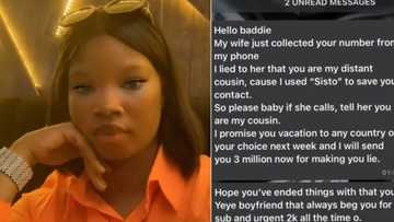 "My wife is suspecting us": Sugar daddy promises side chick N3 million, vacation to hide affair