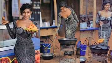 "This akara go cost o": Slay queen wears hot gown to sell bean cake by roadside, video stuns many
