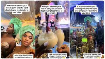 “Wetin we dey find”: Nigerian lady shares the lavish wedding of friend she attended with plenty food