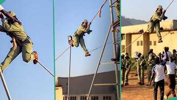 "Can never be me": Lady shares video as she climbs rope during Man O' War drills in NYSC camp