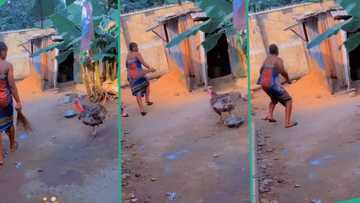 "You are lucky": Lady runs away as turkey pursues her in compound, video goes viral on TikTok