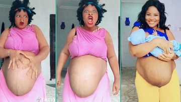 "Chai, the baby don land": Joy as woman who was 40 weeks pregnant finally puts to bed, flaunts baby