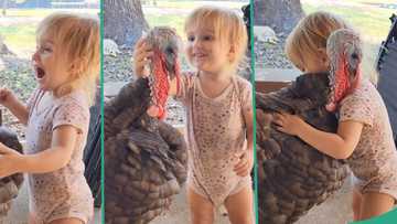 "It Has Home Training": Baby plays with giant turkey, hugs it like human being, video goes viral
