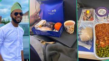 "To travel kon dey hungry me": Man displays sweet meals Air Peace served him on London-Lagos flight