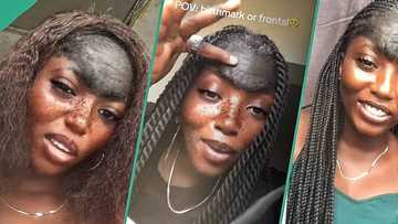 Lady thanks God for unique birthmark on her forehead, says it took her far in life, video goes viral