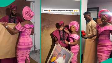 Bride gifts her groom a framed photo of late mother taken with him, moves him to tears emotionally