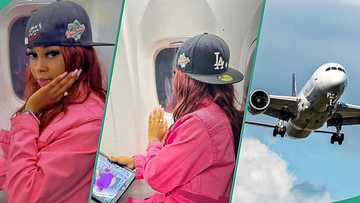 Lady from poor background without helper gets emotional as she boards flight for first time