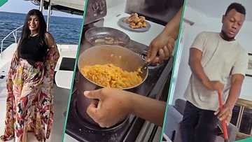 Nigerian woman hails husband for performing house chores, video shows him cooking and mopping