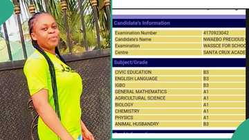 In a message exclusively sent to Legit.ng, Opeyemi revealed it was her first sitting. A look at the result Opeyemi shared with Legit.ng showed she scored six A1's. Opeyemi had A1 in economics, general mathematics, biology, physics, animal husbandry and food and nutrition. When Legit.ng quizzed Opeyemi about how she prepared for the WAEC examination, she replied: