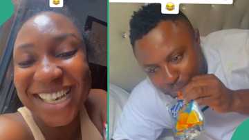 "We are enjoying": Lady and her husband rejoice, drink juice after their children went to school