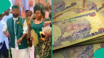 Groom chases lady who packed money sprayed on him during wedding dance, video trends online