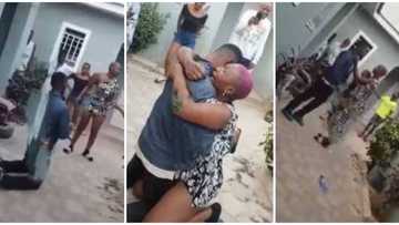Nigerian man causes stir in compound, gives girlfriend 'dirty slap' in weird proposal video, she reacts