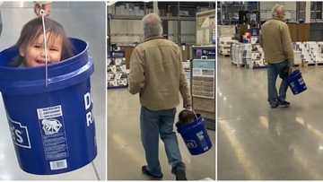 What did she do wrong? Video of kid carried inside bucket like handbag stuns many, baby raises head and smiles