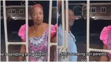 Table don turn: Funny reactions as Nigerian lady turns back parents for staying out late, locks gate in video