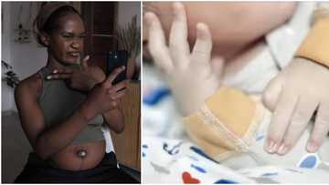 His name is Jayden Mensah: Skit maker Maraji welcomes first child, teases fans with photos of baby's hands