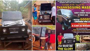 "It took me 3 years": 19-year-old Nigerian boy builds a G-Wagon car himself, holds thanksgiving in his village