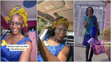 "No make dem run o": Mother dresses up like old woman, goes to pick her kids from school, they react in video