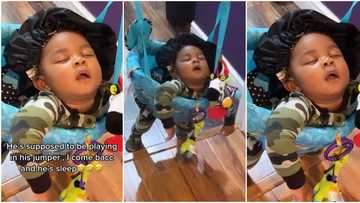 "He's too fake": Baby sleeps off in akward position after mum puts him in a jumper, video emerges on TikTok