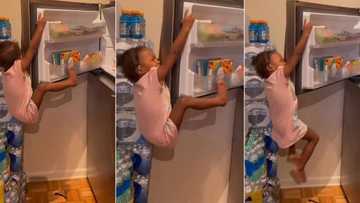 "Stealing snacks gone wrong": Little girl gets stuck on fridge after climbing the door, video trends