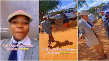 "It's the walk for me": Lady shocks her dad by wearing his clothes and cap, breaks into dance for him