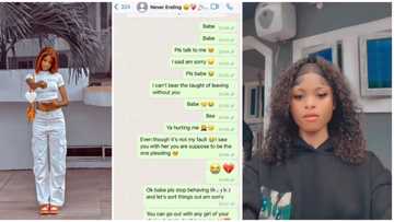 "You dey beg for love": Nigerian lady pleads with boyfriend after she caught him cheating, chat surfaces