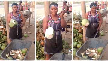 "You are too much": Beautiful lady who sells coconut peels it in a sweet way, TikTok video goes viral
