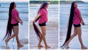 "I saw an angel": Tall lady with extremely long hair walks around beach, video goes viral on TikTok