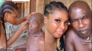 "You are a good daughter": Lady shaves her father's hair with razor blade, carefully barbs him clean gorimapa