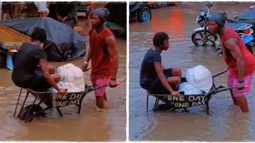 "One day I will make it": Man hustles in flooded area, carries woman in wheelbarrow in viral video