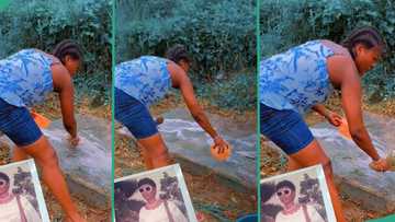 "She is my gold": Nigerian lady visits her late mothers grave, uses water and detergent to wash it