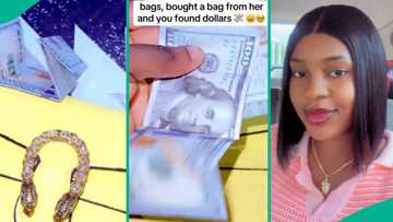 Lady excitedly displays dollars she found in bag she bought from thrift vendor, Nigerians amazed