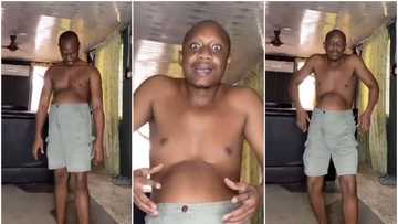 He is pregnant: Shirtless man in grey shorts uses big belly to do sweet, funny dance, stunning video goes viral