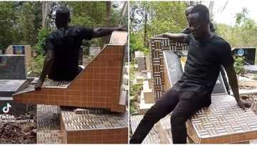 Ghanaian man visits cemetery, sees moving tomb for the first time, he sits on it & spins like a child in video